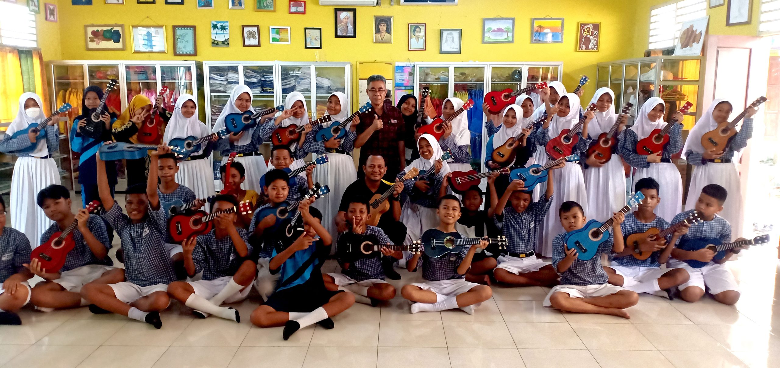 Jadi untuk sementara ini sekolah sediakan ukulele sebanyak 50 buah,hal ini untuk memotifasi anak-anak yang lain untuk membeli ukulele juga.